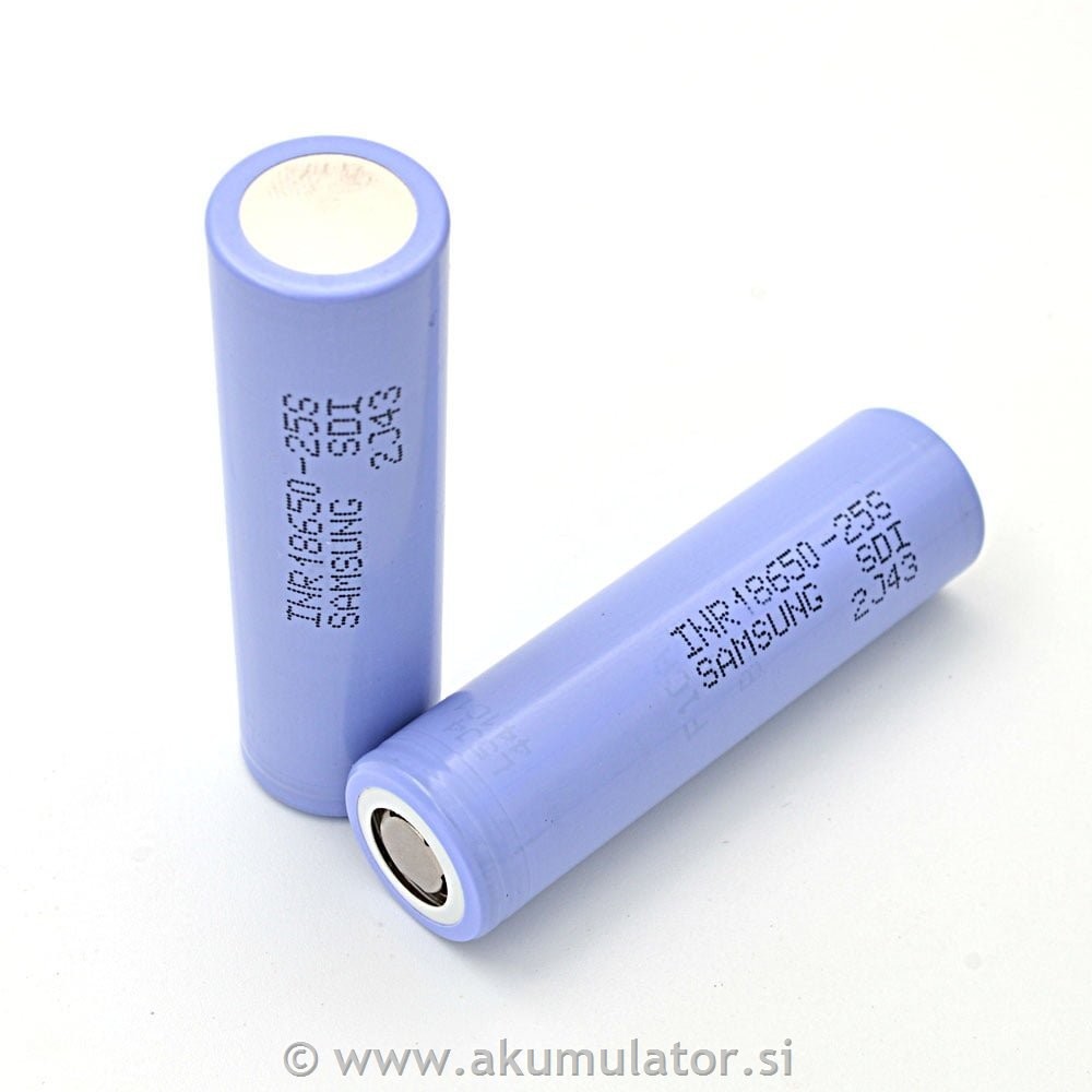 Samsung INR18650-25S 2500mAh 25A je visokozmogljiva Li-ion (litij-ionska) polnilna baterijska celica formata 18650, zasnovana za aplikacije z visokimi tokovnimi obremenitvami. Odlikuje jo odlična kombinacija kapacitete 2500 mAh in stalnega praznilnega toka do 25A, zato je idealna izbira za e-mobilnost, električna orodja, industrijske baterijske pakete in druge zahtevne naprave.